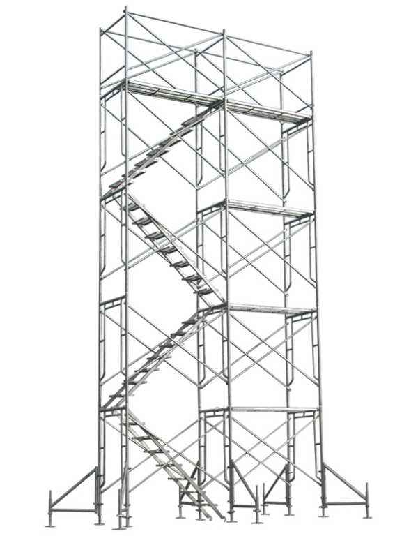 腳手架是以門架、交支撐、連接棒、掛扣式腳手板或水平架、鎖臂等組成基本結構,再設置水平加固桿、剪刀撐、掃地桿、封口桿、托座與底座,并采用連墻件與建筑物主體結構相連的一種標準化鋼管腳手架。